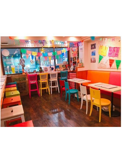 こじんまりとしたスペースなので、みんなが仲良くわいわいと過ごしやすく、アットホームな雰囲気なので、誰かのおうちのホームパーティみたいにリラックスして楽しんでいただけます☆カラフルな店内なので、女性にもかわいいと大好評♡