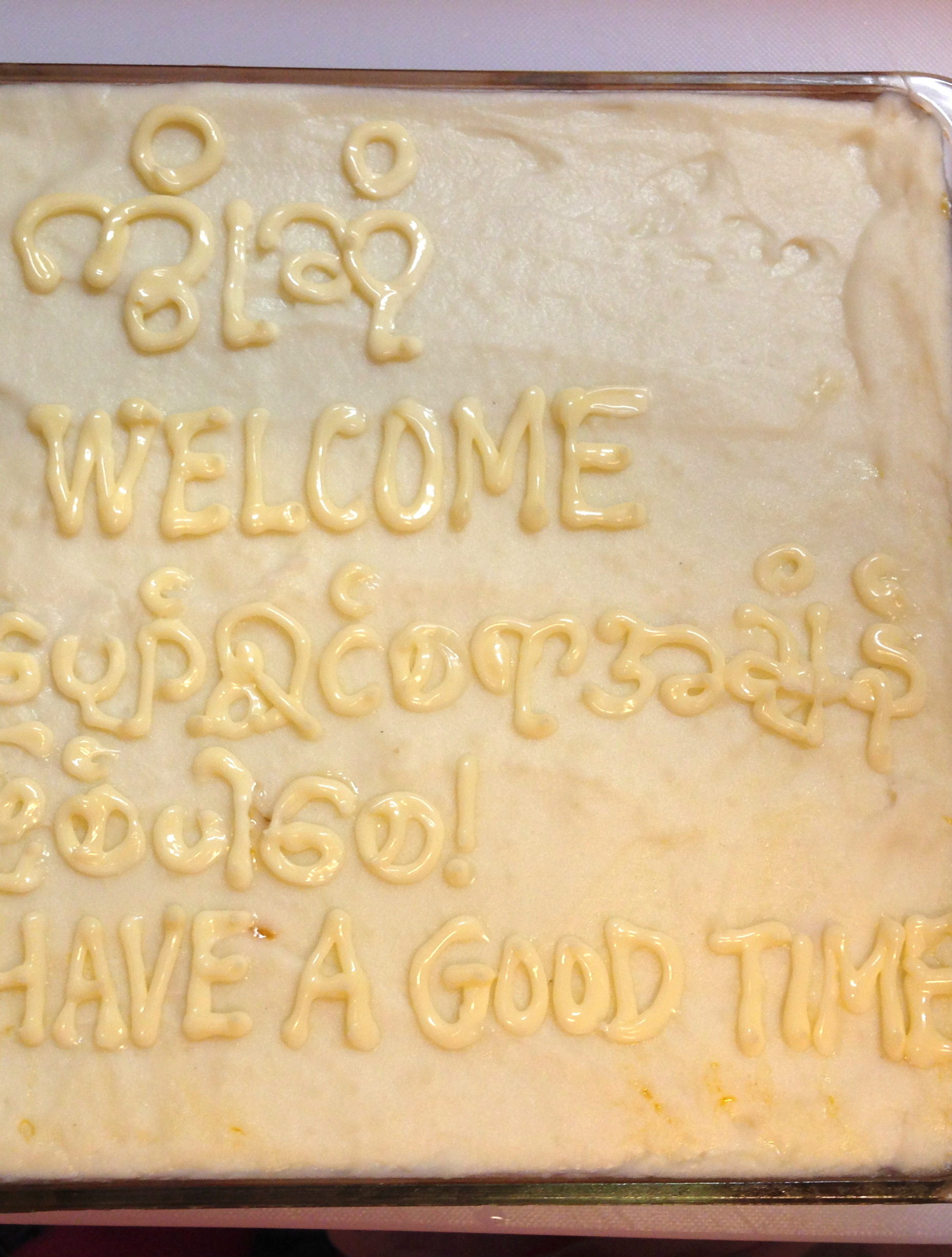 会の趣旨をお伺いできましたら、料理にこそっとこんなメッセージを☆誕生日や歓送迎会、ウェディングパーティなどでも大好評です!ちなみに画像はミャンマーからの新入社員の方の歓迎会とのことでこんな感じに☆