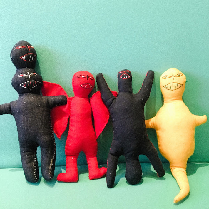 ラオスのルアンパバーンのナイトマーケットで目も心にも何か刺さるのがこの人形たち。これはラオスのピー(精霊)らしいのだけど、マーケットの他はもっとちゃんとした(笑)人形なのに、ここのおばちゃん(私たちは巨匠と呼んでいる)だけはこの感じで。その話をしていたら、ラオスでみんなが連れて帰ってきてくれて、店内にたくさんいるのです。